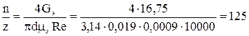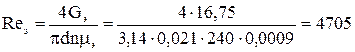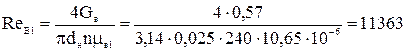 Число Рейнольдса паров винилиденхлорида в межтрубном пространстве: