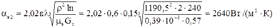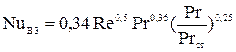 При движении теплоносителя в межтрубном пространстве критерий Нуссельта при Re ≥ 1000 равен [24]: