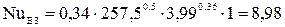 При движении теплоносителя в межтрубном пространстве критерий Нуссельта при Re < 1000 равен: