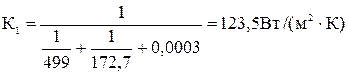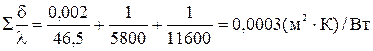 Сумма термических сопротивлений стенки труб из нержавеющей стали и загрязнений со стороны этиленгликоля и паров винилиденхлорида: