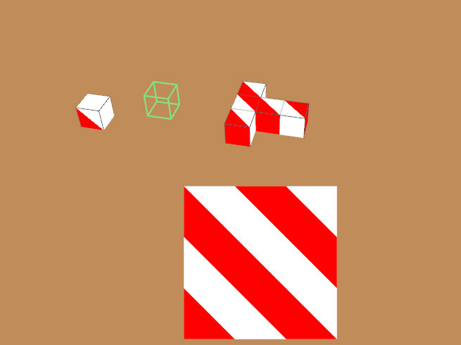 Сама рабочая область представляет собой показанную под некоторым углом поверхность виртуального «стола», на которой и размещаются кубики. В нижней части экрана предъявляется выполняемое задание.