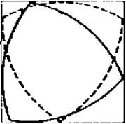 Если кривая постоянной ширины ограничена двумя парами параллельных прямых и одна пара пересекается с другой под прямым углом, то кривая постоянной ширины с необходимостью должна быть вписана в квадрат. Подобно окружности или любой другой кривой постоянной ширины, треугольник Рело может вращаться в квадрате, плотно прилегая к сторонам последнего, то есть все время касаясь всех четырех сторон квадрата (рис. 3, Приложение 1). В этом можно убедиться, вырезав треугольник Рело из картона и вставив его в квадратное отверстие надлежащих размеров.