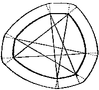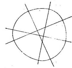 Проведите любое число пересекающихся прямых, затем, ставя по очереди ножку циркуля во все точки пересечения, соединяйте каждый раз дугой окружности те две прямые, которые пересекаются в выбранной вами точке. Начать можно с любой точки, а затем продолжать вычерчивание кривой, сопрягая очередную дугу с предыдущей. Если вы провели все дуги достаточно аккуратно, кривая должна замкнуться, и вы получите еще одну разновидность кривых постоянной ширины (рис.7, Приложение 2).