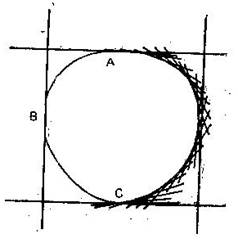 Проделайте эту операцию в как можно большем числе точек дуги АВС. Огибающая к проведенным прямым и будет недостающей правой частью кривой постоянной ширины.