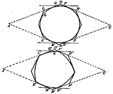 – угольников заменой сторон BE, BF, DL и DH сторонами EM, MN, NF, LQ, QP, PH, имеют равные периметры. Производя это построение для каждых двух сторон BE и BF, сходящиеся в одной вершине, мы построим описанные вокруг K и O 2n