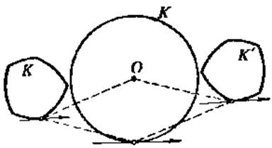 – угольники (n = 2, 3, 4,…), описанные вокруг O и K, имеют равные периметры; следовательно, пределы этих периметров при n® ∞ также равны, т. е. длины кривых K и O равны. Длина окружности O равна, как известно ph, значит, и длина K равна ph.