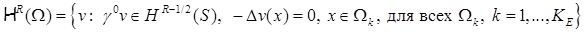 В классическом случае эллиптических уравнений второго порядка при должных оговорках относительно гладкости границы, коэффициентов и граничных функций слабые решения принадлежат пространству Соболева . Следы этих решений на границе суперэлементного разбиения области принадлежат пространству Соболева с полуцелым показателем гладкости [16; 18]. Выбор функции, аппроксимирующей след решения на границе разбиения в норме пространства , и применение МКСЭ приведут к приближенному решению, аппроксимирующему в точное решение.