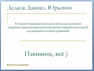 http://danila-dedkov.narod.ru – личный веб-сайт автора данной работы. На сайте размещены граф научных интересов, гостевая книга, презентация магистерской работы, а также данная работа.