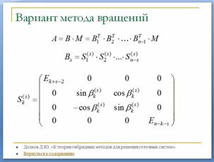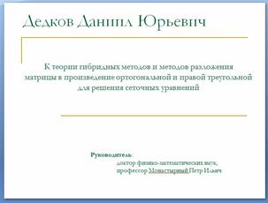 Тема магистерской диссертации: «К теории гибридных методов и методов разложения матрицы в произведение ортогональной и правой треугольной для решения сеточных уравнений».