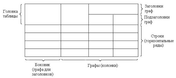 Заголовки граф и строк таблицы следует писать с прописной буквы, а подзаголовки граф - со строчной буквы, если они составляют одно предложение с заголовком, или с прописной буквы, если они имеют самостоятельное значение. В конце заголовков и подзаголовков таблиц точки не ставят. Заголовки и подзаголовки граф указывают в единственном числе.