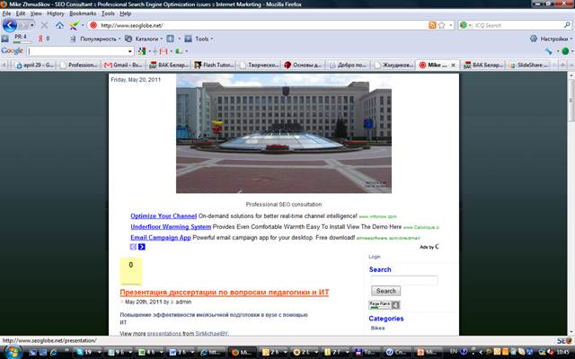 Действующий личный сайт в WWW (http://www.seoglobe.net/ )и Print SCreen главной страницы 83