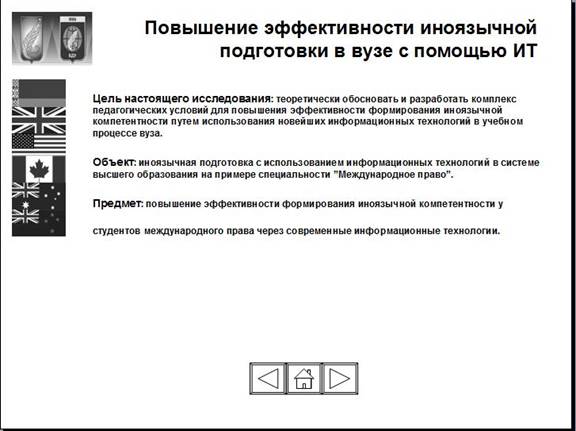 : теоретически обосновать и разработать комплекс педагогических условий для повышения эффективности формирования иноязычной компетентности путем использования новейших информационных технологий в учебном процессе вуза.