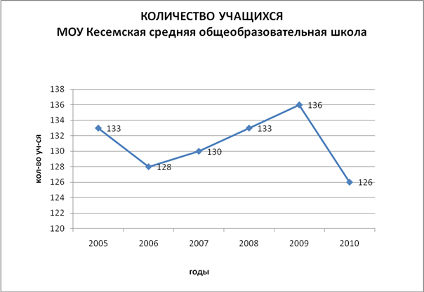 В последние годы в связи с реализацией Приоритетного национального проекта «Образование» в системе школьного обучения происходят качественные преобразования. Введено предпрофильное и профильное обучение, итоговая аттестация выпускников в форме ГИА и ЕГЭ, подушевое финансирование, МОУ КСОШ получила статус базовой школы Кесемского сельского образовательного округа, в практику работы внедряются информационно-коммуникационные технологии, происходит процесс компьютеризации школы.