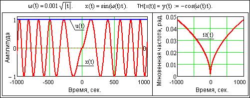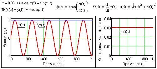 Рис. 24.1.2. Мгновенная амплитуда и частота гармонического сигнала.