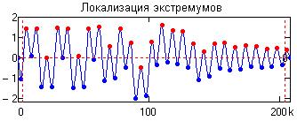 Другими словами, остановка декомпозиции сигнала должна происходить при максимальном «выпрямлении» остатка, т.е. превращения его в тренд сигнала по интервалу задания с числом экстремумов не более 2-3. Даже для данных с нулевым средним значением конечный остаток может отличаться от нуля. Чтобы применять метод EMD, центрирования данных не требуется, метод нуждается только в локализациях экстремумов. Нулевая линия для каждого компонента декомпозиции будет сформирована процессом отсеивания. Извлеченные IMFs локально симметричны, имеют физически значимые функции мгновенных частот, различные IMFs не показывают ту же самую частоту в то же самое время. Каждая IMF содержит более низкие частотные составляющие, чем извлеченная перед ней.