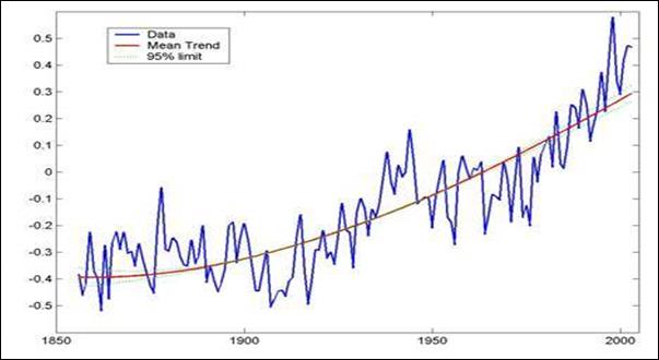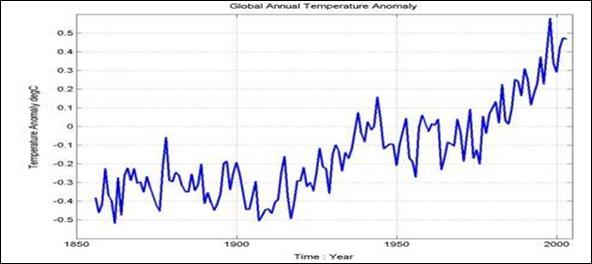 Рис. 24.2.14. Глобальная температурная аномалия. Ежегодные данные с 1856 до 2003.