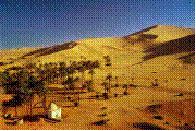 Когда-то хозяевами Сахары были туареги. Ныне мусульмане, раньше они поклонялись царице Танит, в память о которой у них и сейчас щиты и мечи завершаются рукоятью в виде буквы "Т", а сами они остаются приверженцами матриархата. Женщины вершат у них правосудие и сами выбирают себе мужей. До сих пор существует рабство: господа рождаются от потомков Танит, рабы - от потомков ее служанки. Соседние племена называют туарегов "синими людьми" - лица мужчин прикрыты тканью и от постоянного ношения синий краситель въедается в кожу.