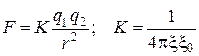 Соотношение для расчета величины силы электростатического взаимодействия похоже на соотношение гравитационного взаимодействия: