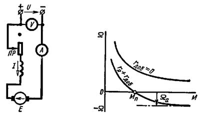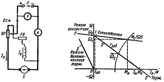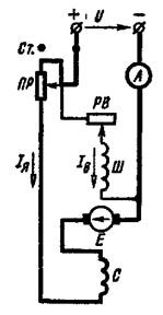 Схема двигателя параллельного возбуждения с пусковым реостатом приведена на рис. 3.а.