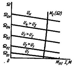 ). При нагрузках на валу в пределах до номинальной скорость двигателя уменьшается мало, на 3-7% от Ω0