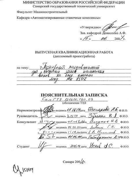 При завершении работы над пояснительной запиской на титульном листе должны быть собраны подписи руководителя, консультантов и нормоконтролера.