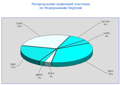 Ежегодный опыт проведения Российской Венчурной Ярмарки, проводящейся в рамках Российского Венчурного Форума, также доказывает неравномерность по федеральным округам участвующих компаний, заинтересованных в привлечении венчурных инвестиций и представляющих потенциальный интерес для венчурных инвесторов. Наиболее активные округа – Центральный ФО и Северо-западный ФО. Третье место занимает Приволжский ФО.