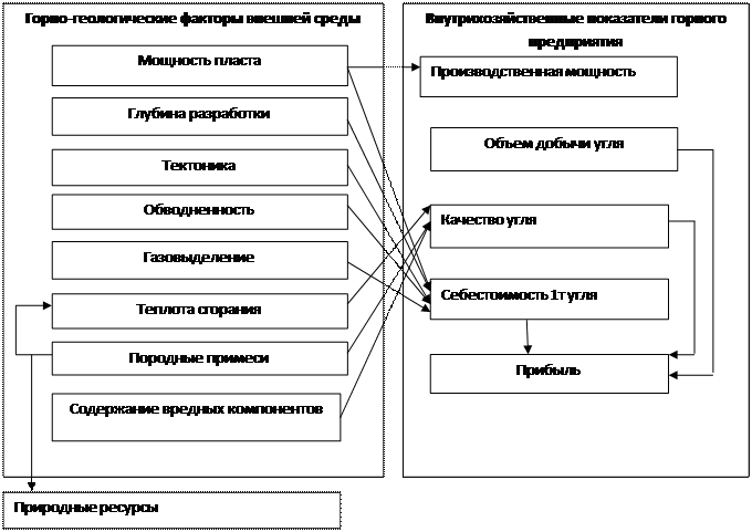 - влияние факторов внешней среды на деятельность предприятия, в частности влияние состояний российского и мирового рынка угля; природных характеристик разрабатываемого месторождения каменного угля;