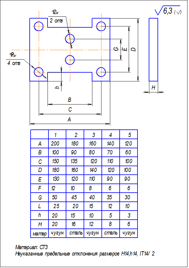 Листовой материал с размерами 122х26х14 мм. (При сложной форме показать чертеж).