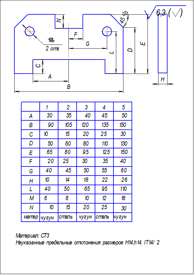 1. Получить у преподавателя чертеж детали (смотри приложение).