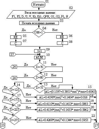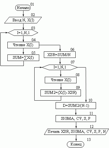 Блок-схема алгоритма расчёта показана на рисунке 1.1. Программа статистических показателей представлена в листинге.
