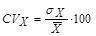 Коэффициент вариации, как и стандартное отклонение, характеризует степень изменчивости признака, но не в абсолютной, а в относительной форме, что позволяет сравнивать изменчивость признаков, имеющих различную размерность. Коэффициент вариации, , рассчитывается по формуле