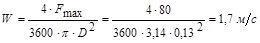 w:=4*F*(273+t)/(3600*3.14* sqr(D)*273);