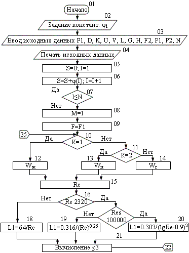 В программе приняты следующие обозначения: – количество местных сопротивлений; – плотность среды, ; – вязкость среды, ; – максимальный и минимальный расход соответственно, ; – давление в начале участка трубопровода, МПа; – давление в конце трубопровода, МПа; – длинна трубопровода, м; – диаметр трубопровода, м; – высота вертикального участка трубопровода, м; – плотность пара при давлении и рабочей температуре, ; – давление перед клапаном, МПа; – плотность пара при давлении и рабочей температуре, ; – давление за клапаном, МПа; – температура газа, ; – абсолютная температура газа, К; – безразмерный коэффициент, учитывающий отклонение реального газа от закона идеального газа; – плотность газа при нормальных условиях ( и ), ; – ускорение свободного падения, ; S – сумма коэффициентов местных сопротивлений; – скорость вещества, ; – число Рейнольдса; – потери давления в трубопроводе, МПа; – потери давления на вертикальном участке, МПа; – перепад давления на клапане, МПа; – условная пропускная способность клапана, .
