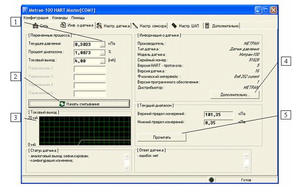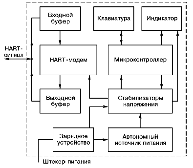 Датчики с HART-протоколом передают информацию об измеряемой величине в цифровом виде по двухпроводной линии связи вместе с сигналом постоянного тока 4-20 мА. Этот цифровой сигнал может приниматься и обрабатываться любым устройством, поддерживающим протокол HART. Цифровой выход используется для связи датчика с портативным ручным HART-коммуникатором или с персональным компьютером через стандартный последовательный порт и дополнительный HART-модем, при этом может выполняться настройка датчика, выбор его основных параметров, перестройка диапазонов измерений, корректировка «нуля» и ряд других операций. HART-протокол допускает в системе наличия двух управляющих устройств: системы управления и ручного коммуникатора. Эти управляющие устройства имеют разные адреса и следовательно Метран-100 может распознать и выполнить команды каждого из них.