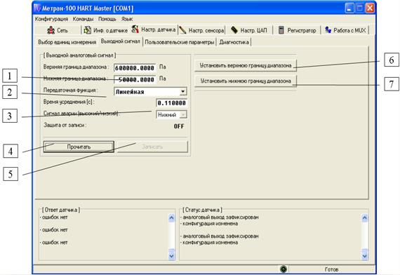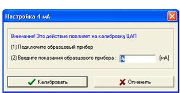 1.Установить нижнее предельное значение выходного сигнала датчика, равное 4 мА.
