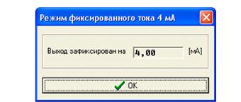 2.Установить нижнее предельное значение выходного сигнала датчика, равное 4 мА.