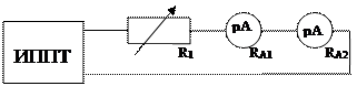 = (100 – 300 Ом). Установить с помощью изменения напряжения на выхода ИППТ значение тока по прибору pA2
