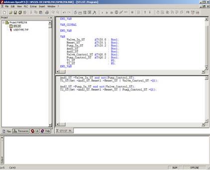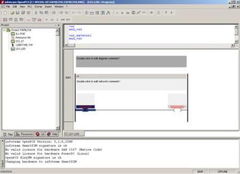 Перечисленные языки IEC 6 1131-3 используются ведущими фирмами изготовителями ПЛК, имеют длительную историю применения, достаточно распространены и известны пользователям по тем или иным модификациям. Несмотря на то, что во многих случаях такие модификации несущественны, это влечет определенные неудобства при работе с ПЛК различных фирм-изготовителей. С этой точки зрения, стандарт IEC 6 1131-3, несомненно, прогрессивен, поскольку позволяет привести бесчисленное число различных вариантов и интерпретаций языков ПЛК к единому знаменателю. OpenPCS представлен в виде двух частей: набора средств разработки и исполняемого на целевом ПЛК ядра-интерпретатора. Набор средств разработки исполняется на компьютере проектировщика, например, компьютере типа IBM PC, и состоит из редактора, отладчика и препроцессора, который подготавливает описанный проектировщиком алгоритм к формату, "понятному" ядру-интерпретатору. Этот набор имеет современный пользовательский интерфейс, позволяет тестировать алгоритм в режиме эмуляции и получать листинг алгоритма на языках его описания. После создания, пользовательская программа совместно с ядром-интерпретатором загружается в целевой ПЛК для исполнения. Ядро-интерпретатор, как следует уже из его названия, транслирует пользовательский алгоритм во время исполнения. Это позволяет сконцентрировать машинно-зависимый код и таким образом снизить накладные расходы при переходе на другой ПЛК. Неплохой подход, однако, сразу необходимо отметить, что интерпретационная модель имеет недостаток - она всегда снижает показатели эффективности исполнения программы.