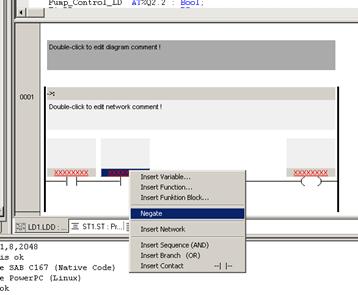 Программирование последовательной цепи в контактном плане. Если необходимо, установите LAD