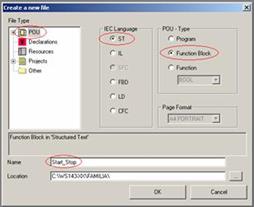 Реализация программы «Старт-стоп» на языке ST
