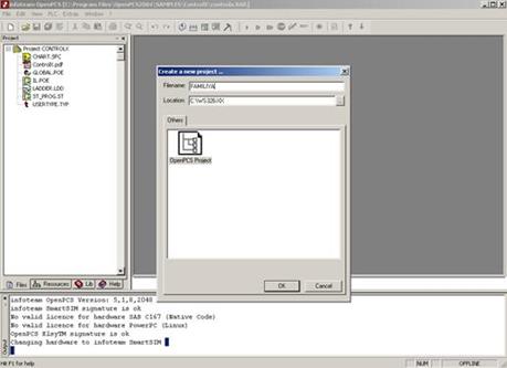 Если рабочий проект в OpenPCS не создавался, выберите предлагаемый проект (Рис.3) либо загрузите его по указанному ниже пути. Самостоятельно ознакомьтесь с демонстрационными проектами, находящимися в директории С:\Program Files\OpenPCS2004\Samples\