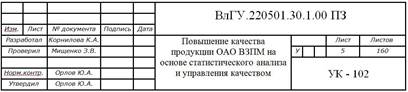 1.Тема проекта Повышение качества продукции ОАО ВЗПМ на основе статистического анализа и управления качеством