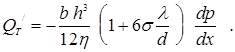 Следует отметить, что наличие градиента скорости поперек капилляра приводит к эффекту скольжения. Это означает, что величина скорости в направлении движения газа вблизи стенки не будет равна нулю, предполагается, что вблизи поверхности можно выделить слой на расстояние длинны свободного пробега молекул, в котором молекулы не сталкиваются между собой. Можно полагать, что падающие на поверхность молекулы в среднем имеют некоторую тангенциальную составляющую скорости. Покидающие поверхность молекулы рассеиваются равновероятно в любую сторону по закону косинуса с нулевой ??? скоростью. Обычные средние скорости для обеих групп молекул вблизи поверхности дают некоторую скорость, которуюназывают скоростью столкновения газа на поверхности. в отличие от основного граничного условия, применяемого в механике сплошных сред для движения вблизи поверхности жидкости (газа). Точное решение этой задачи может быть проведено методами строгой кинетической теории. С учетом скорости скольжения средняя по сечению капилляра скорость равна