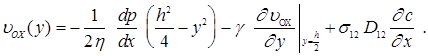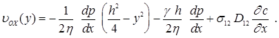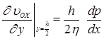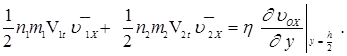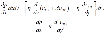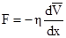 При этом в направлении, противоположном движению, действует сила (отнесенная к единице поверхности соприкосновения слоев), пропорциональная изменению скорости в направлении, перпендикулярном направлению движения (ось x)