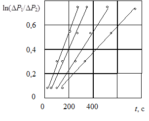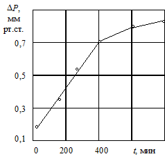 Решеное уравнение (3.3), определяет зависимость перепада давлений на капилляре от времени в виде