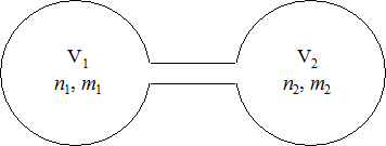 Дня определения экспериментального коэффициента динамической вязкости необходимо иметь формулу для вычисления из опытных данных расхода газа. Для этого рассмотрим баланс числа частиц в объемах V1