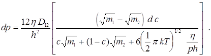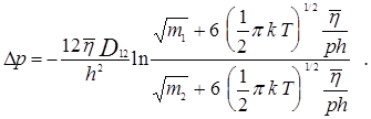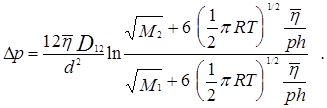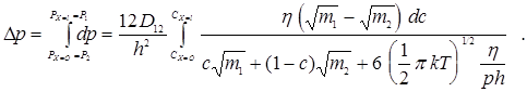 при единичном перепаде давлений; S - площадь поперечного сечения капилляра; - средняя числовая плотность в капилляре; V