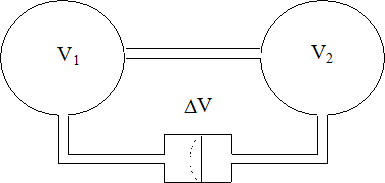 Полагаем, что объемы изменяются во времени. Это изменение объемов на величину DV вызвано прогибом мембраны емкостного датчика давления, служащего для регистрации разности давлений на концах капилляра. Рис.3.1. Принципиальная схема вискозиметра
