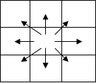 – яркость каждого пиксела, значение которой учитывается для определения яркости центрального пиксела; X – центральный пиксел окна.Как видно из формулы, для определения яркости элемента X используются значения яркостей 8 окружающих его элементов. Такой фильтр называется восьмисвязанным