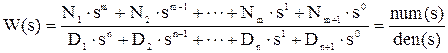 задаётся в командном окне MATLAB многочленом числителя num(s) и многочленом знаменателя den(s).